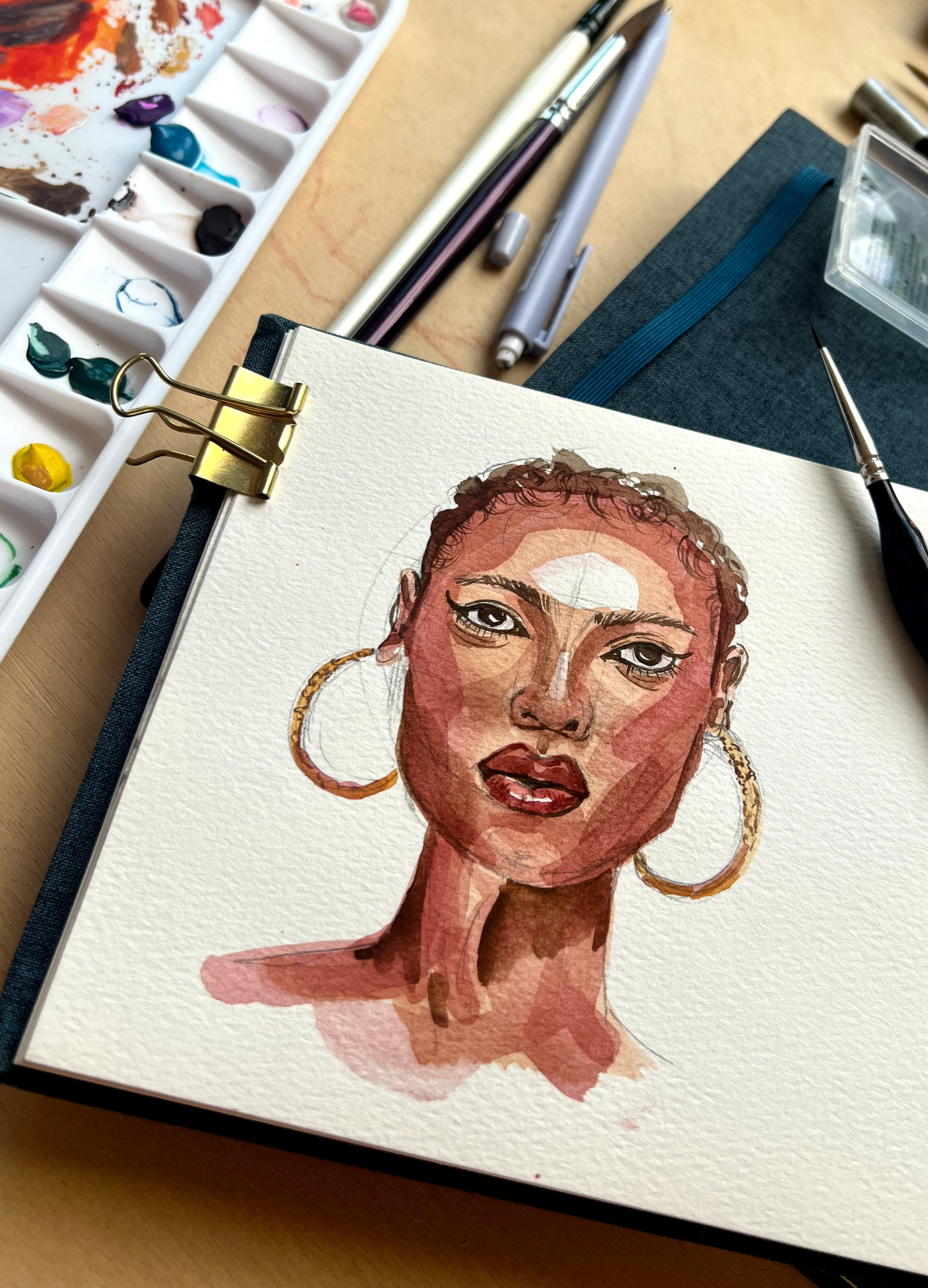 A collection of a variety of portraiture, still life, and everyday objects studies and finished compositions.